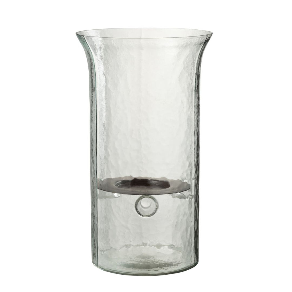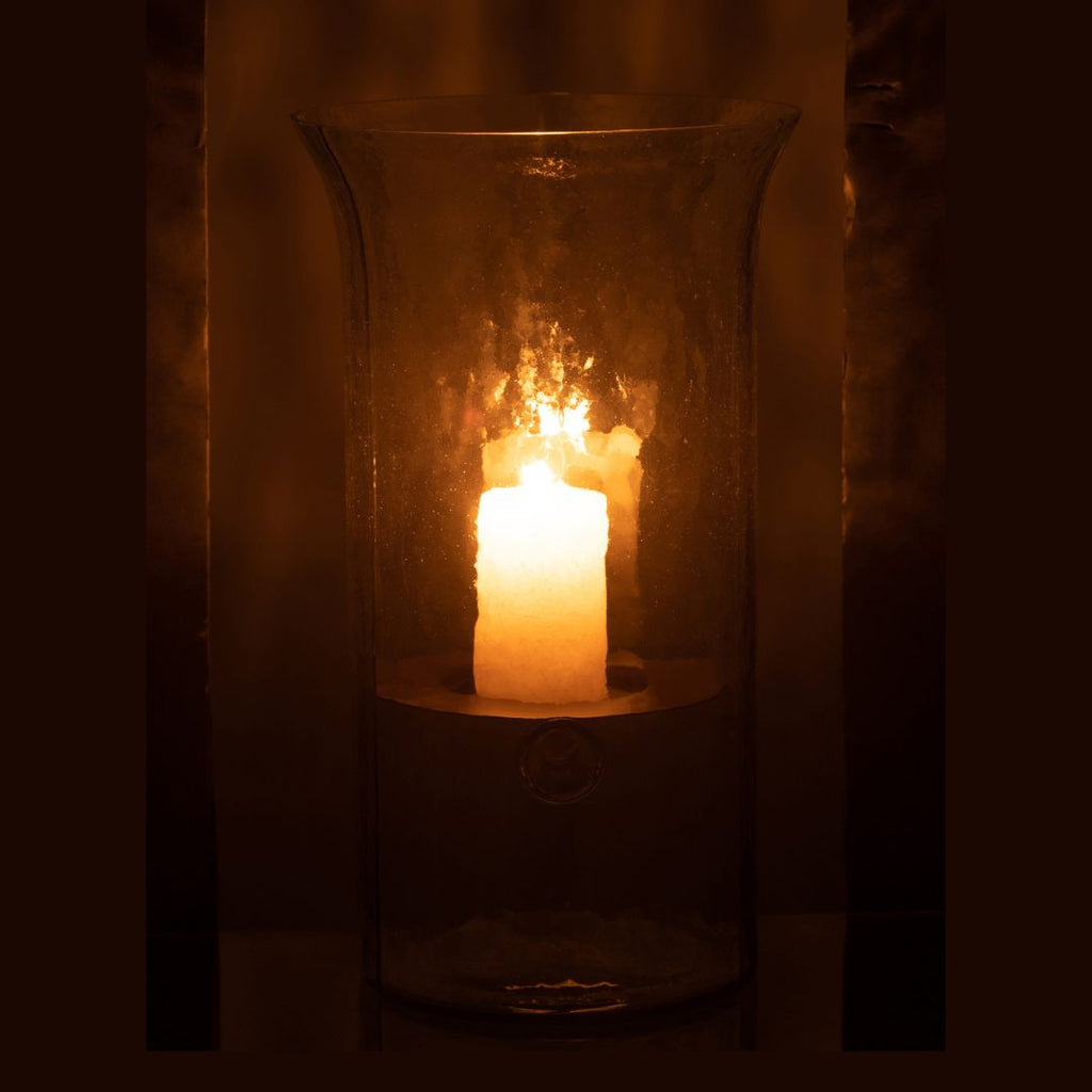 This Large Glass Candleholder With Plate measures 32cm in height and 19cm in width, ideal for medium-sized candles. The blurred plate adds a stylish touch and provides a secure base for the candle. Add a stylish and modern touch to your décor.