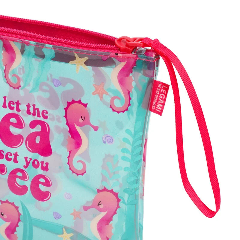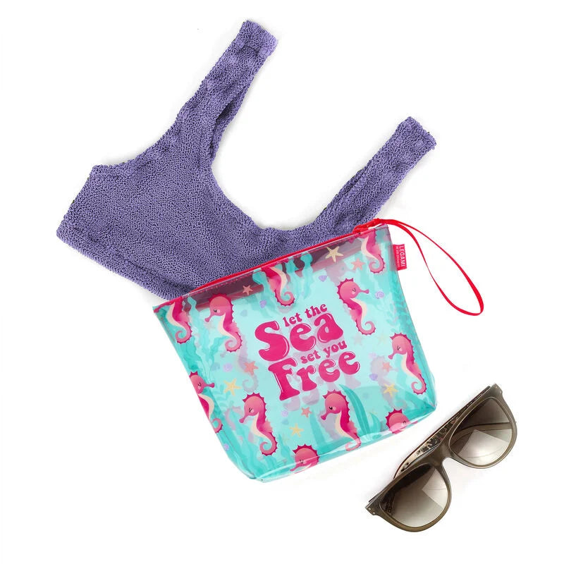 The Seahorse Beach Pouch is the most sophisticated way to prevent your coins and small objects from getting lost. Thanks to the zip closure it keeps your items safe and free from sand, while the transparent design lets you check you've got everything in a heartbeat. Alternatively, the waterproof material makes it the perfect place to store your wet swimwear after a dip, keeping the rest of the bag dry!