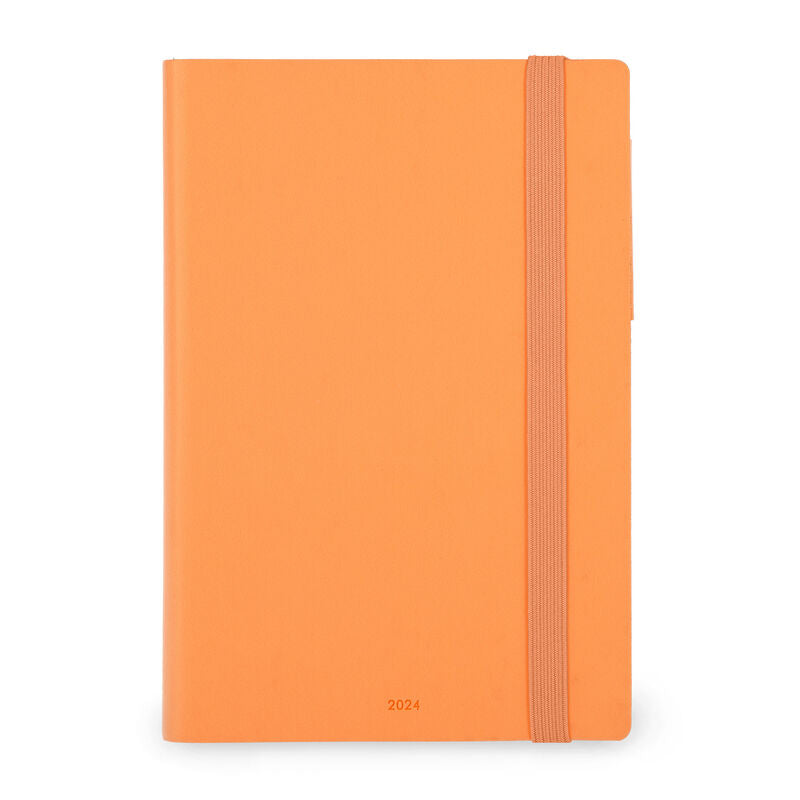 Plan your days in style with the Legami Medium 12-Month Daily Diary 2024 - Fresh Apricot. With a ruled page for every day from 8am to 8pm, there's plenty of space to record important tasks, to-dos and notes. With a double-page planner for every month including January 2025, international holidays and perforated corners which you can tear off at the end of each day to make it easier to find today's date, the attention to detail is evident on the outside, too. Featuring a colourful soft PU cover, elastic closure and ribbon bookmark.