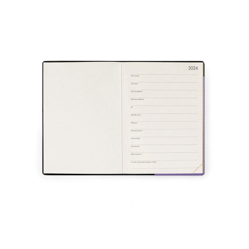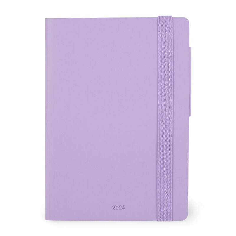 From your morning meetings to dinner with a friend, the Legami Small 12-Month Daily Diary 2024 - Lavender is the perfect accessory. With a ruled page for every day from 8am to 8pm, there's plenty of space to record important tasks, to-dos and notes. With a double-page planner for every month and perforated corners which you can tear off at the end of each day to make it easier to find today's date, the attention to detail is evident on the outside, too. Featuring a colourful soft PU hard cover and an elastic closure.