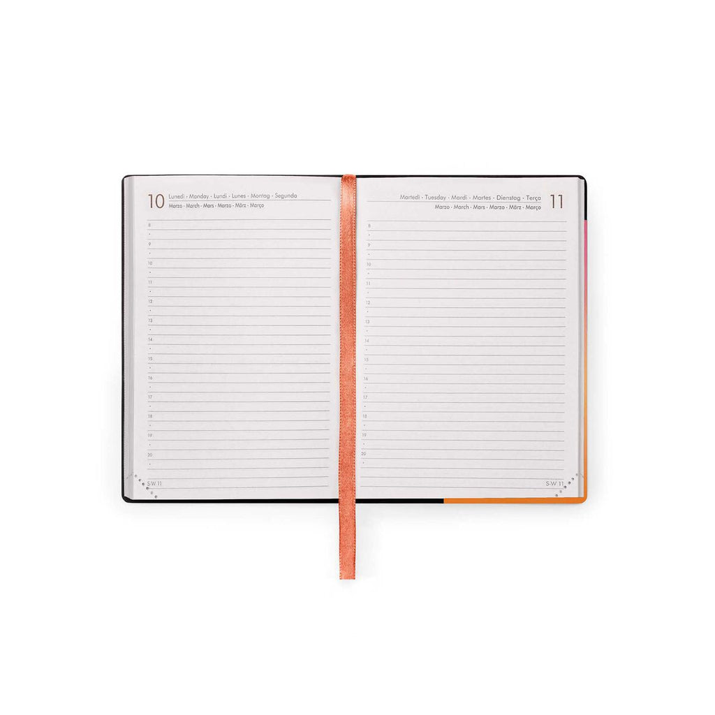 From your morning meetings to dinner with a friend, the Legami Small 12-Month Daily Diary 2025 - Golden Hour is the perfect accessory. With a ruled page for every day from 8am to 8pm, there's plenty of space to record important tasks, to-dos and notes. With a double-page planner for every month and perforated corners which you can tear off at the end of each day to make it easier to find today's date, the attention to detail is evident on the outside, too. Featuring a colourful soft PU hard cover and an elastic closure.